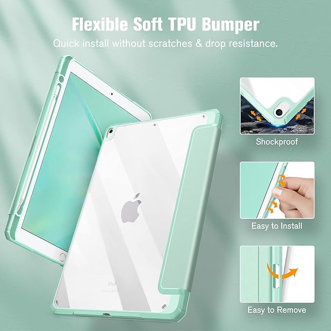 Fintie iPad Air 2019 ケース iPad Air3 / Pro 2017 10.5インチ 透明バックカバー Apple Pencil 収納可能 三つ折スタンド スリープ機能 軽量 薄型 傷つけ防止 PU合成レザー TPU (モデル番号A2152、A2123、A2153、A1701、A1709)(グリーン)