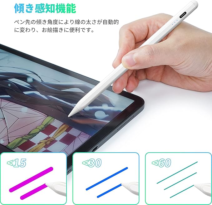 【2024年新登場 20分急速充電】 AiSFUL タッチペン iPad対応 極細 超高感度 急速充電 apple pencil スタイラスペン ipad ペンシル 誤作動防止/自動オフ/磁気吸着機能対応 イラスト ゲーム 2018年以降iPad/iPad Pro/iPad air/iPad mini/iPad 第9世代/第10世代対応 USB充電式 【筆圧感知非対応】