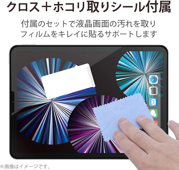 iPad Pro 11インチ (第4世代)(2022年モデル)、iPad Air (第5世代)(2022年モデル)、iPad Pro 11インチ (第3世代)(2021年モデル)、iPad Air (第4世代)(2020年モデル)、iPad Pro 11インチ (第2世代)(2020年モデル)、iPad Pro 11インチ (2018年モデル)の液晶画面を傷や汚れから守る、指紋防止・超透明タイプの液晶保護フィルムです。