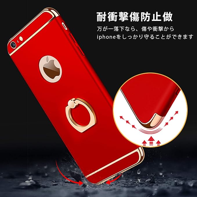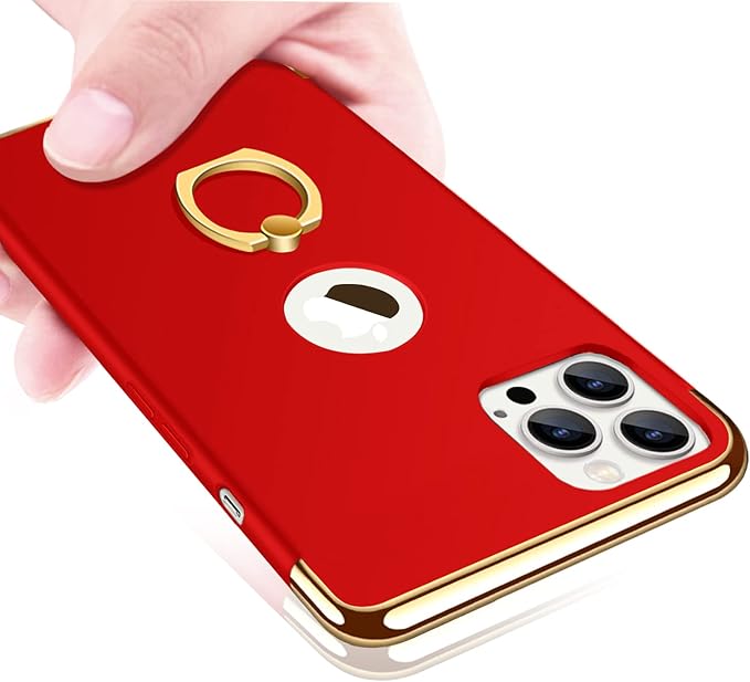 YULNCUZ iPhone 13 Pro Max ケース リング付き 衝撃吸収 3パーツ式 PC 携帯カバー 軽量 薄型 iPhone13ProMax カバー スタンド機能 360回転 スマホケース 耐衝撃 レンズ保護 指紋防止 落下防止 スリム アイフォン13 pro max カバー 赤 YZ35-5