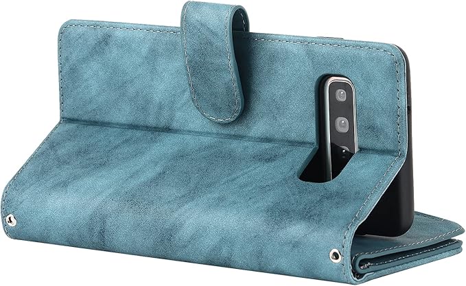 Eastwave サムスン ギャラクシー S10 ケース for Samsung Galaxy S10 縄掛けケース 手帳型 財布型 ICカード コインポケット ストラップ付き カード 収納 小銭入れ ファスナーポケット付き PUレザー 6色 ブルー