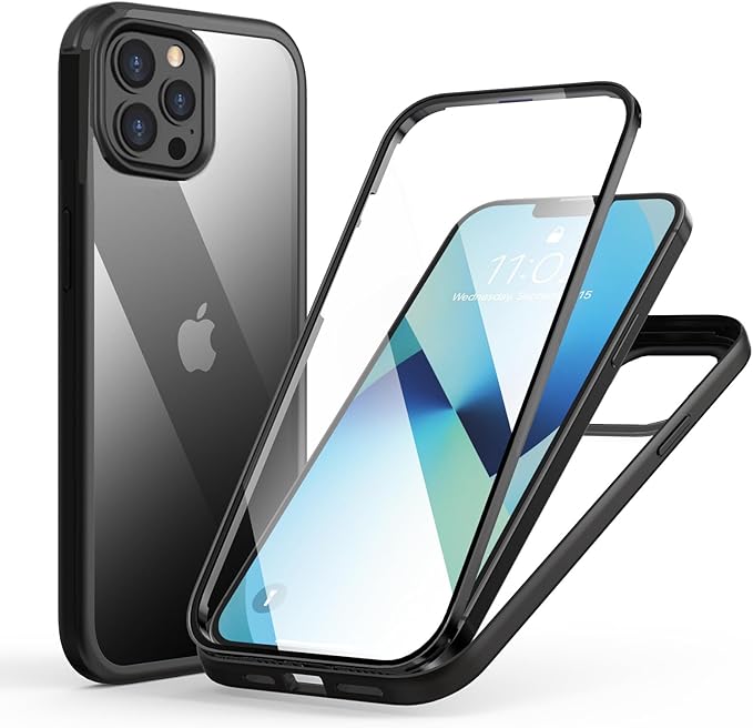 MQman iPhone12 iPhone12Pro ケース 前面ガラス+背面ガラス 360 全面保護 100%画面タッチ感度 耐衝撃 強化ガラス フロント+バックプレート 軽量 ワイヤレス充電対応 前後 両面 カバー (iphone12/12pro用, ブラック)