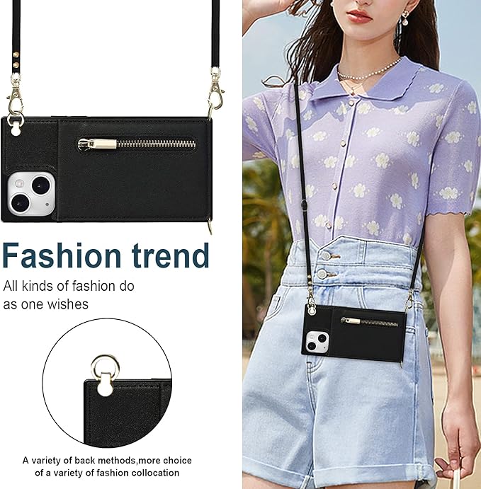 iPhone 13 ケース 手帳型 ショルダー クロスボディ iPhone13 ケース iphone13スマホケース iphone13手帳型 アイフォン 13 ケース 手帳ケース アイホン 13 ケース CASE アイフォン13 ケースカバー 適用 【iCoverCase】 肩がけ 首掛け 斜め掛け カードケース チェーン ファスナー型 ストラップ付き ショルダーケース クロスボディケース カード入れ スマホケース 携帯カバー ブラック