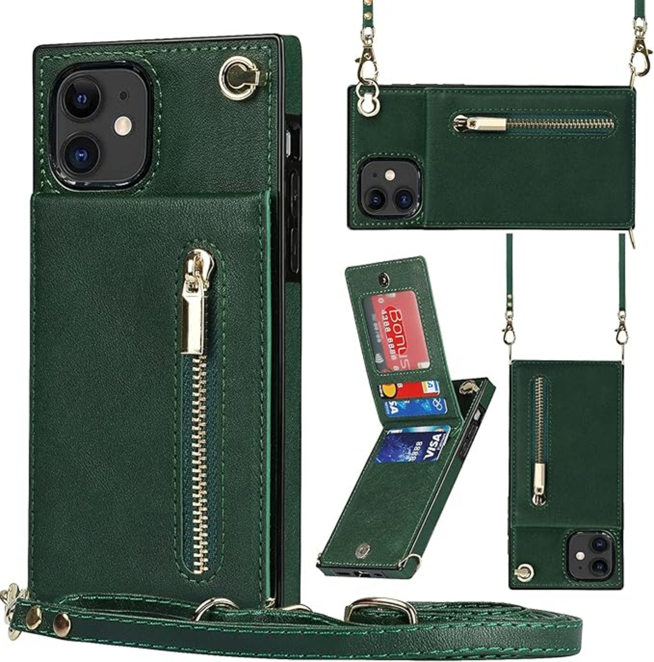 iPhone 11 ケース 手帳型 ショルダー クロスボディ iPhone11 ケース iphone11スマホケース iphone11手帳型 アイフォン 11 ケース 手帳ケース アイホン 11 ケース CASE アイフォン11 ケースカバー 適用 【iCoverCase】 肩がけ 首掛け 斜め掛け カードケース チェーン ファスナー型 ストラップ付き ショルダーケース クロスボディケース カード入れ スマホケース 携帯カバー グリーン