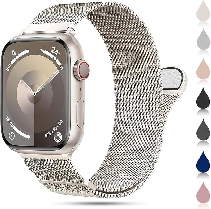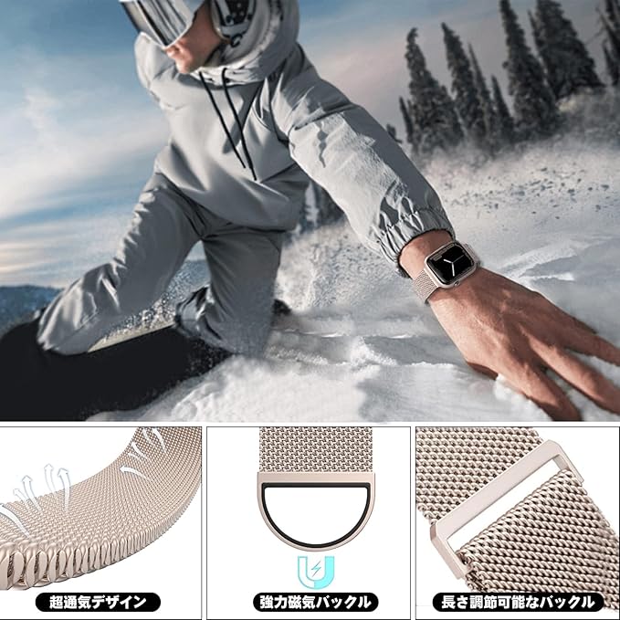 CAERMA コンパチブル アップルウォッチ バンド 38mm 40mm 41mm 42mm 44mm 45mm 46mm 49mm コンパチブル Apple Watch バンド ステンレス留め金製 男女兼用 長さ調節 強力な磁 通気 メッシュ ベルト コンパチブル Apple Watch Series 10/9/8/7/6/5/4/3/2/1/SE/Ultra 対応(42mm(Series 10)/41/40/38mm, スターライト)