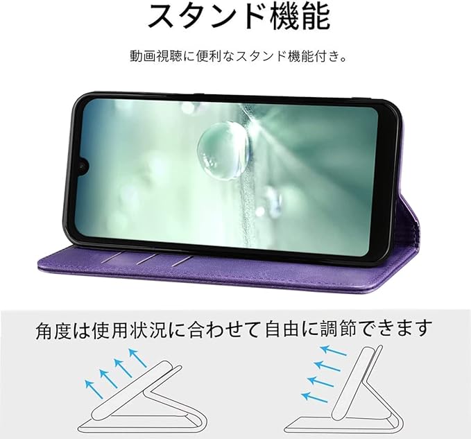 AQUOS Wish SHG06 ケース 手帳型 高質PUレザー AQUOS Wish2 ケース 耐衝撃 SH-51C ケース AQUOS Wish カバー sh-m20 ケース 内蔵マグネット開閉式 ベルトなし A104SH スマホケース おしゃれ カードポケット スタンド機能 便利 スプラット同梱 携帯ケース (パープル)