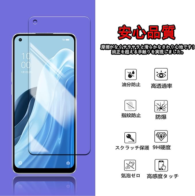 【2+2枚セット】OPPO Reno7 A / Reno9 A 用のガラスフィルム フィルム(2枚) + レンズ保護フィルム (2枚) 強化ガラス液晶保護フィルム液晶 ガラス ケース フィルム 硬度9H 指紋防止 気泡なし 貼り付け簡単 OPPOReno9A / OPPOReno7A OPG04 用の