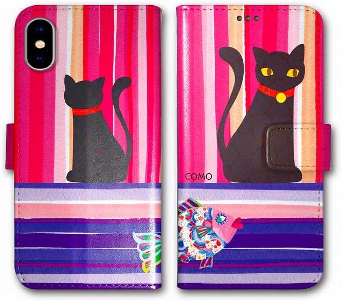 AQUOS sense5G SH-53A 対応 ケース 手帳型 スマホケース アクオス センス5G SHG03 SH-M17 AQUOS sense4 lite sense4 basic AQUOS sense4 SH-41A SH-M15 スマホカバー 軽量 カード収納 動物 アニマル柄 COMOデザイン 黒ネコと魚 ストライプ コラージュ