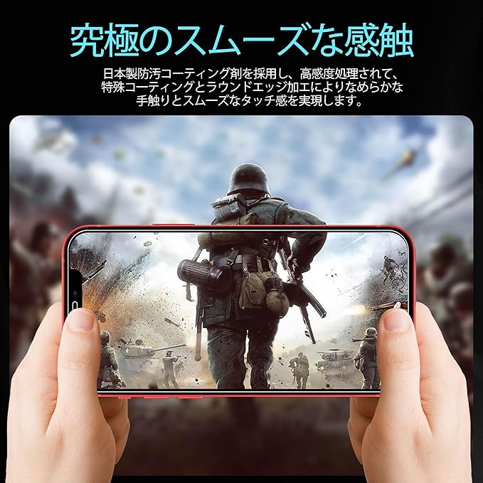 【指紋防止、高感度タッチ】ガラスフィルムには撥油コーティングが施されており、指紋や汚れ