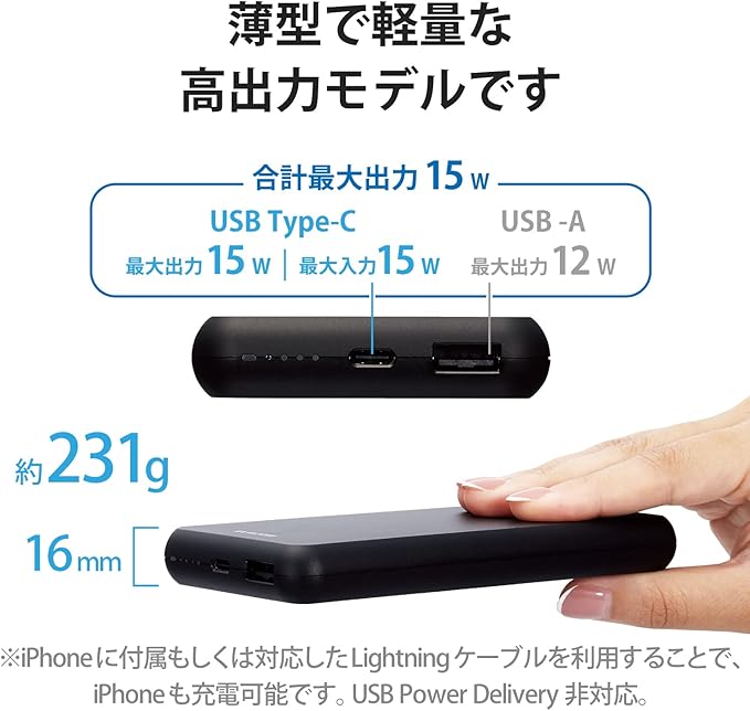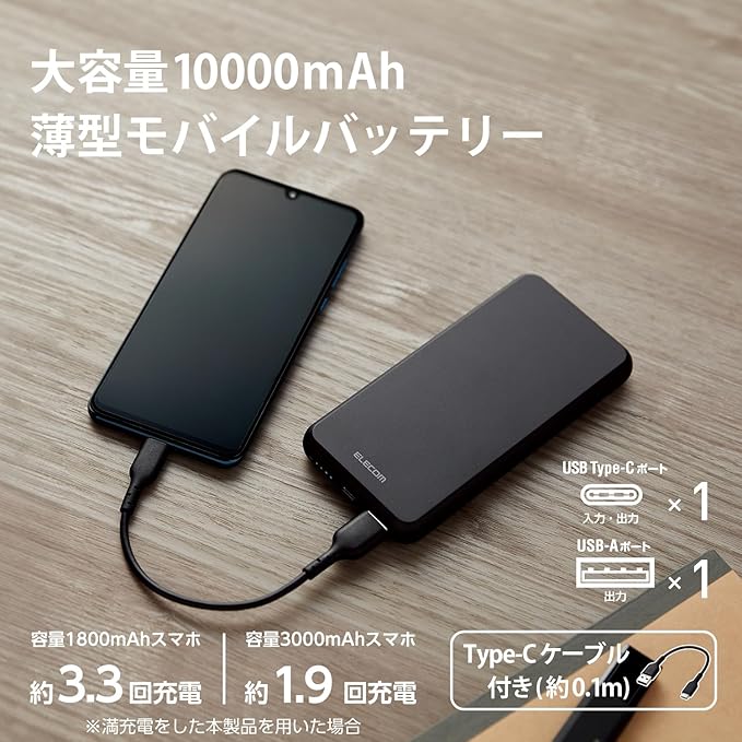 エレコム モバイルバッテリー 大容量 10000mAh 15W 2台同時充電 出力2ポート (Type-C/USB-A) 入力(Type-C) 【 iPhone SE3 / 13 / 12 / iPad/Android 各種対応】 ブラック EC-C05BK