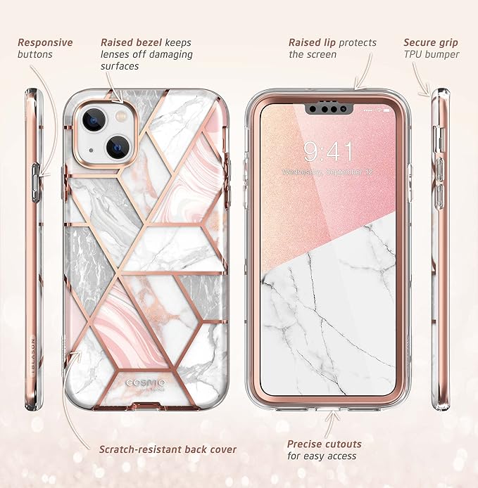 i-Blason iPhone14 Plus ケース 6.7インチ 2022 全面保護 耐衝撃 米軍MIL規格取得 画面保護フィルム バンパー&ケースの三重構造 一体型 PC+TPU衝撃吸収 安心感 ワイヤレス充電対応 女性向け おしゃれ かわいい