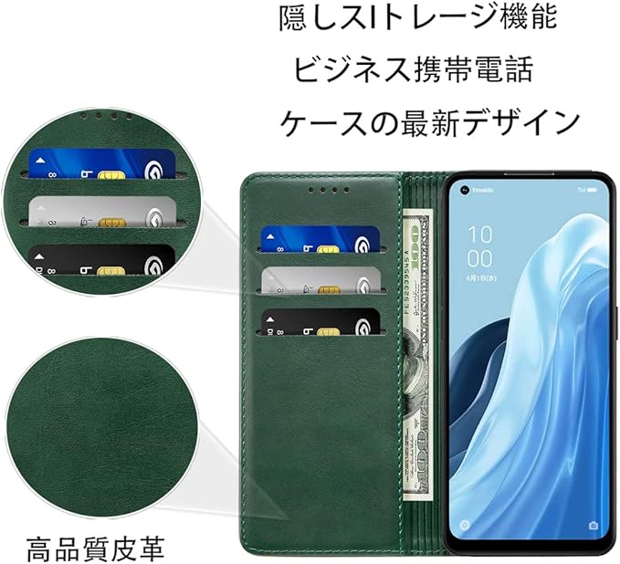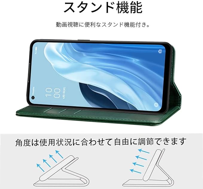 OPPO Reno9 A ケース 手帳型 Oppo Reno7 A ケース OPG04 ケース A201OP ケース 高質PUレザー A301OP ケース OPPO Reno 7A カバー 耐衝撃 オッポ Reno 7A 手帳 ケース 内蔵マグネット開閉式 ベルトなし スマホケース おしゃれ カードポケット スタンド機能 便利 スプラット同梱 携帯ケース (グリーン)