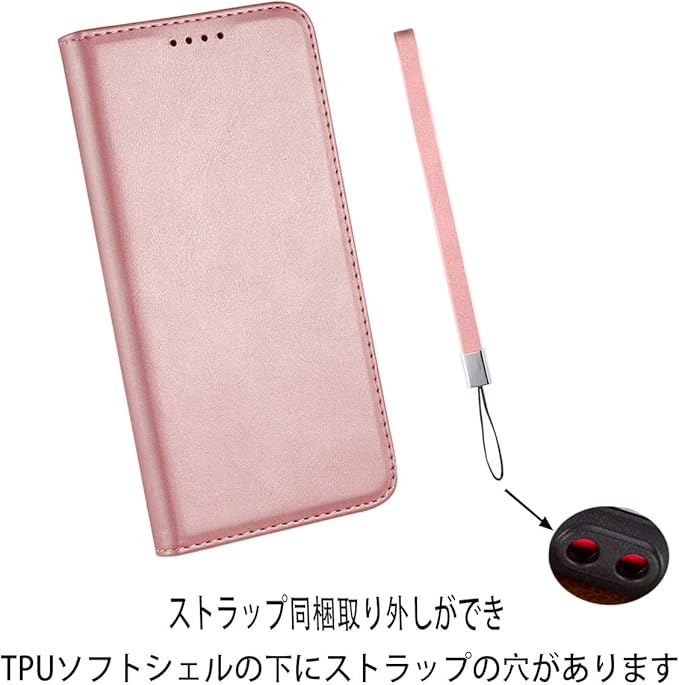 【カードポケット付き】:財布型ケースとして、名刺やお札などを入れるカードポケットがつき、ちょっとしたお出かけにもスマホケース一つでOK日常生活に便利です