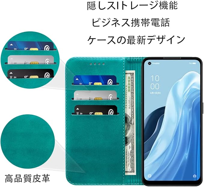 OPPO Reno9 A ケース 手帳型 Oppo Reno7 A ケース OPG04 ケース A201OP ケース 高質PUレザー A301OP ケース OPPO Reno 7A カバー 耐衝撃 オッポ Reno 7A 手帳 ケース 内蔵マグネット開閉式 ベルトなし スマホケース おしゃれ カードポケット スタンド機能 便利 スプラット同梱 携帯ケース(ターコイズ)