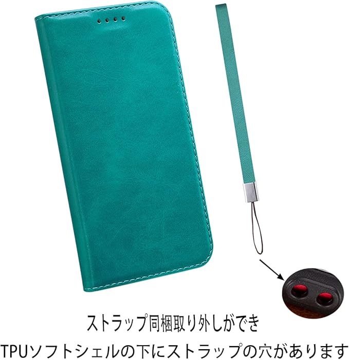 【カードポケット付き】:財布型ケースとして、名刺やお札などを入れるカードポケットがつき、ちょっとしたお出かけにもスマホケース一つでOK日常生活に便利です
