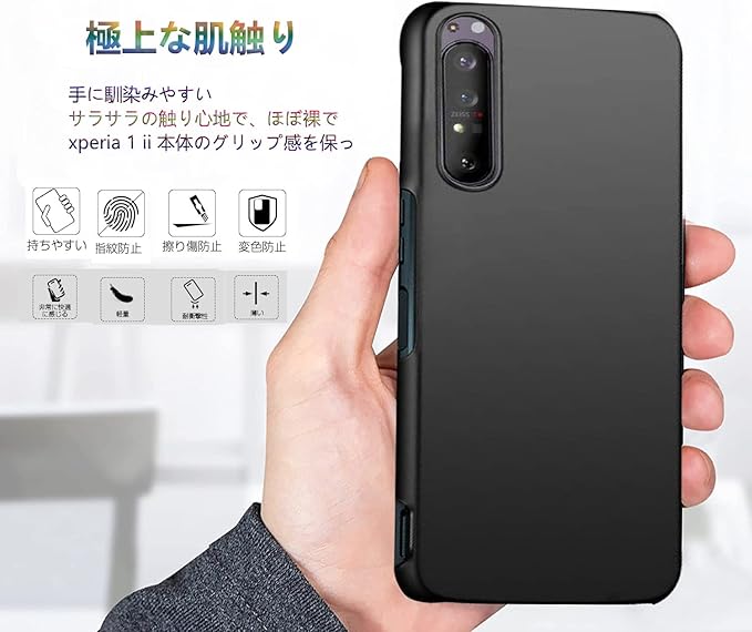 【極薄デザイン】Wojiaozvlf Xperia1 II ケースは0.8 mmの極薄設計を行います。わずか0.8mm薄さ、16g軽さで、付けていることを忘れるほどの超軽量デザイン、手への負担ゼロ。Wojiaozvlfの超軽薄Xperia 1 II SO-51A SOG01 ケース ケースと比べて、普通の耐衝撃ケースは厚すぎて、手触りが悪く、ポケットに入れると明らかに落下感があります。厚いケースなので、長時間スマホを使うと過熱しやすく、携帯の機能損ない。指紋も残しやすくなります。Xperia 1 II 本体装着してケースの重みは感じません。見た目の質感も高級感があって良い物です。