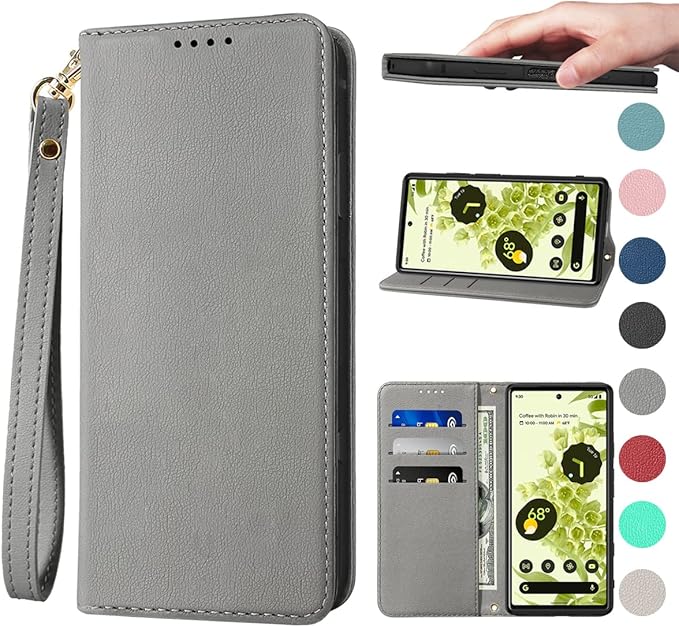 Google Pixel 6A ケース 手帳型 高質PUレザー Pixel 6A カバー Pixel 6A ケース 耐衝撃 内蔵マグネット開閉式 ベルトなし スマホケース おしゃれ カードポケット スタンド機能 便利 スプラット同梱 携帯ケース グレー