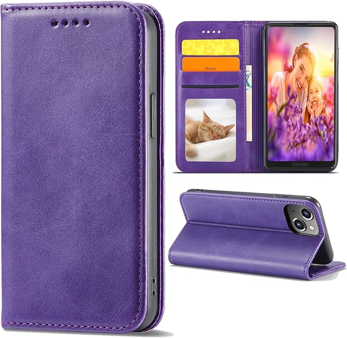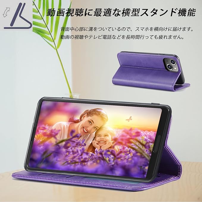 iPhone14 ケース 手帳型 iPhone 14 手帳 カバー iPhone14 手帳型ケース アイフォン14 ケース 携帯ケース iPhone14 case あいふぉん14手帳型ケース マホケース 携帯カバー PUレザー ストラップホール付き カード収納 内蔵マグネット式 スタンド機能 薄型 防水 ノート型 耐衝撃 男女兼用 落ち着いた色 (iPhone 14 6.1 inch対応) パープル