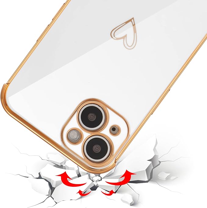ZTOFERA iPhone 14 用 ハートケース iPhone 14 ケース 柔軟な TPU シリコン スマホケース メッキ加工 ソフト 軽量 耐衝撃 おしゃれ 韓国 可愛い アイフォン 14 ケース 女子 女性 心パターン 携帯電話カ