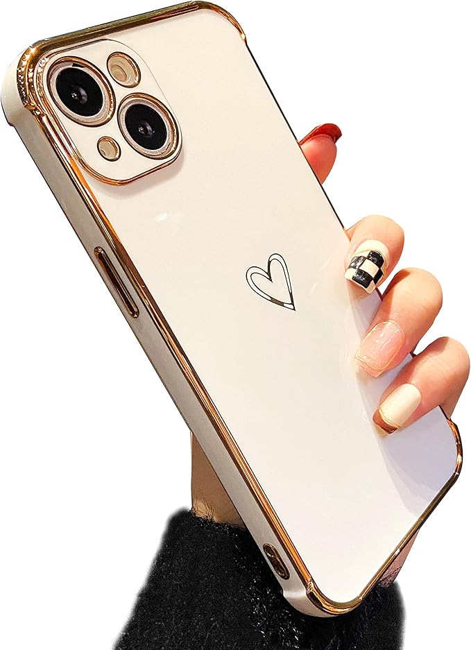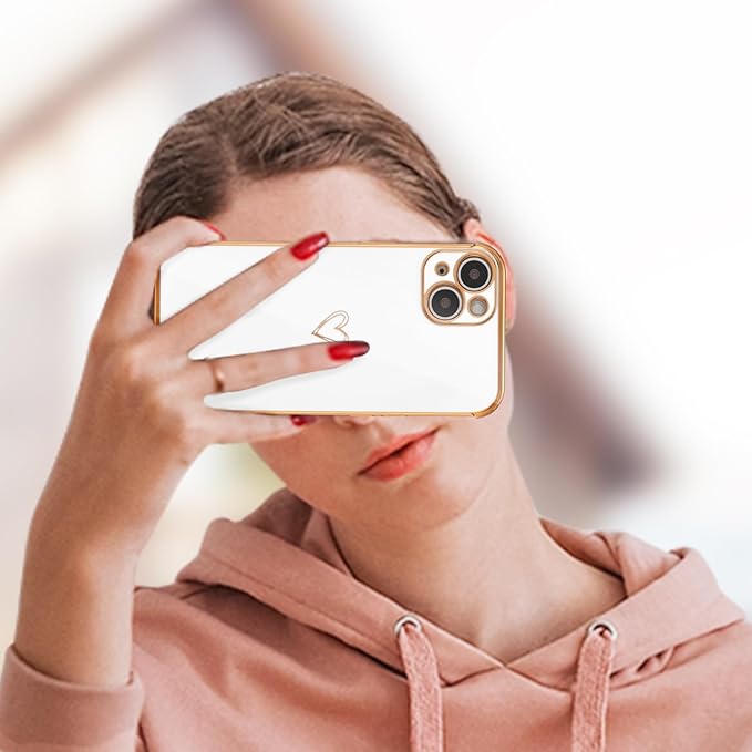 ZTOFERA iPhone 14 用 ハートケース iPhone 14 ケース 柔軟な TPU シリコン スマホケース メッキ加工 ソフト 軽量 耐衝撃 おしゃれ 韓国 可愛い アイフォン 14 ケース 女子 女性 心パターン 携帯電話カバー ワイヤレス充電対応 (ホワイト)