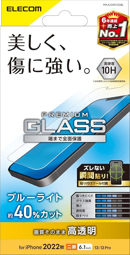 エレコム iPhone 16e / 14 / 13 / 13 Pro ガラスフィルム ブルーライトカット 強化ガラス 表面硬度10H 指紋防止 飛散防止 エアーレス 光沢 PM-A22AFLGGBL