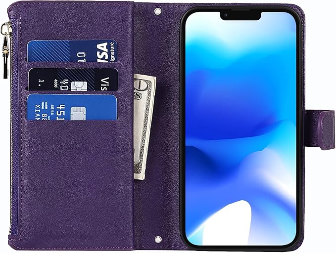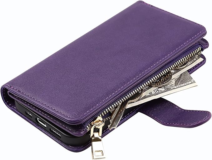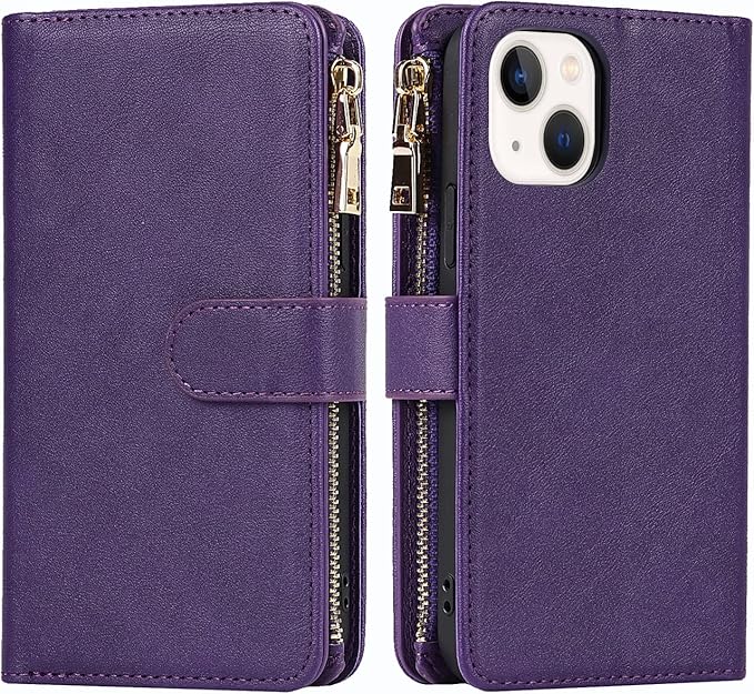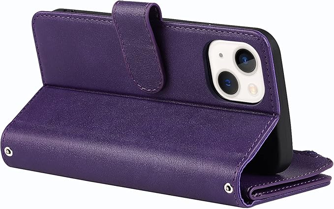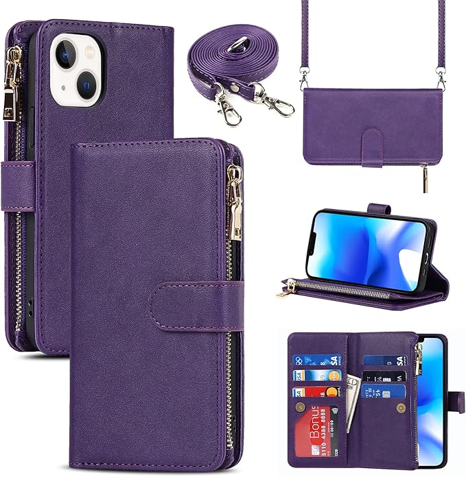 Pelanty for iPhone 14 Plus 縄掛けケース 手帳型 携帯カバー 肩掛け首かけ斜めがけ ショルダー 合成皮革+TPUケース マグネット iPhone14 Plus 財布型カバー ICカード お札入れ小銭入れ大容量 収納ポケット スタンド機能 アイフォン14Plus ストラップ付き 落下防止 耐衝撃 耐摩擦 全面保護(肩縄付き-パープル)
