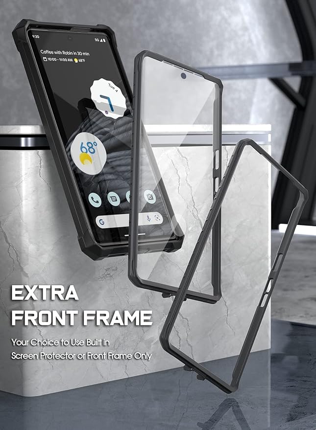 Poetic Guardianケース Pixel 7 Pro 5G対応 内蔵スクリーンプロテクター 指紋ID対応 フルボディ ハイブリッド 耐衝撃 保護 頑丈 クリア バンパーカバーケース、ブラック/クリア