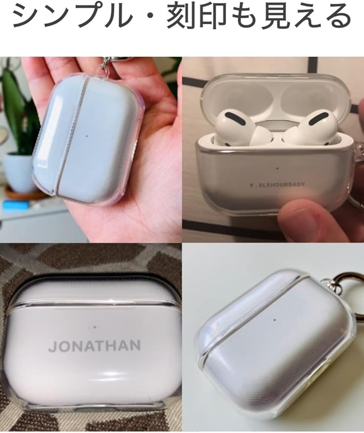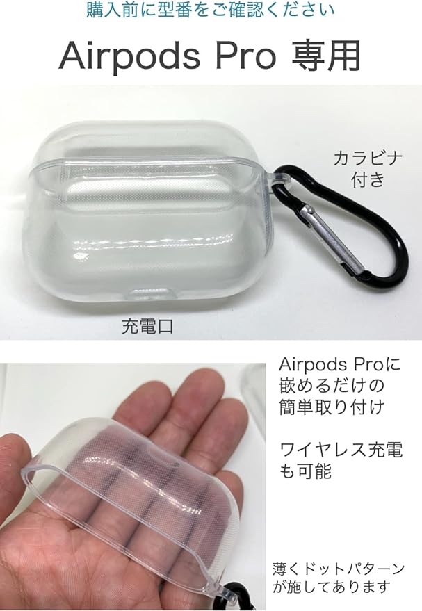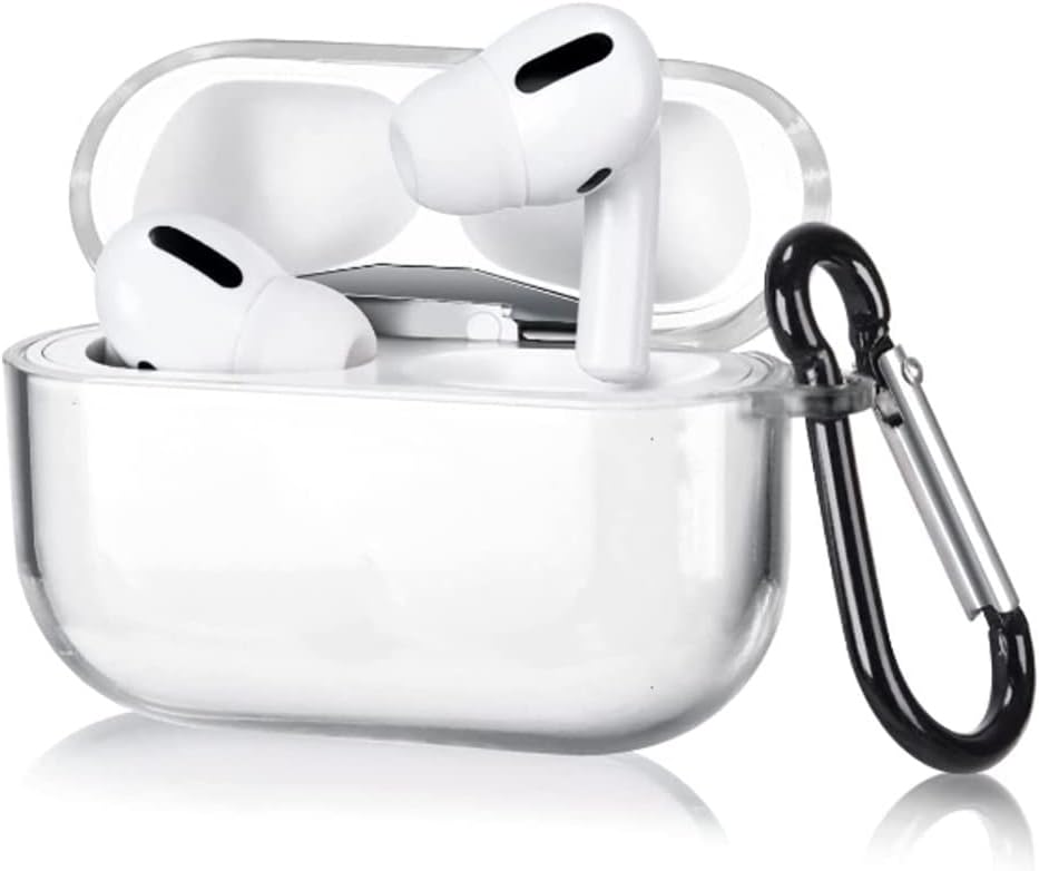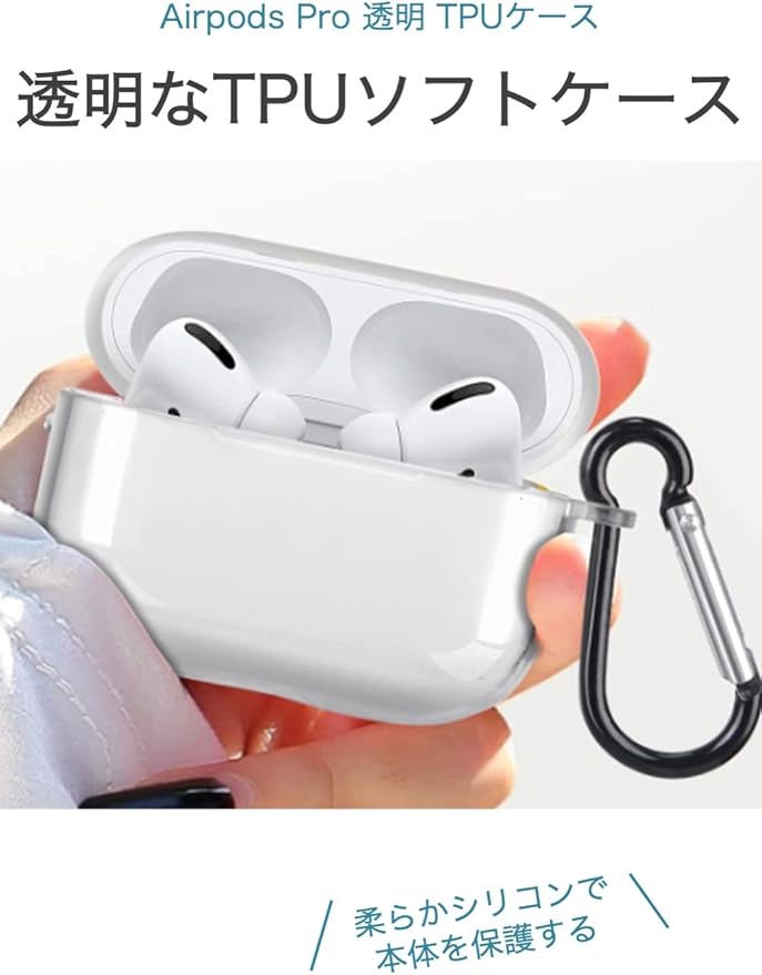 wumio Airpods Pro 互換 ソフトケース 透明 カラビナ付き TPUケース 本体保護 耐衝撃 キズ防止 クリア ワイヤレス充電 シリコン エアーポッズ カバー アクセサリー