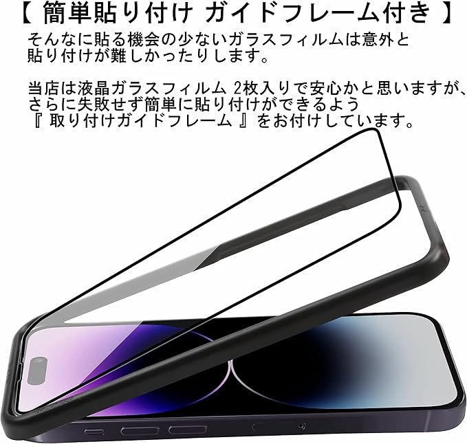 【対応機種】ガイド枠付き iPhone14proMaxガラスフィルム2枚+レンズフィルム2枚 6.7インチに対応 【180日安心 】