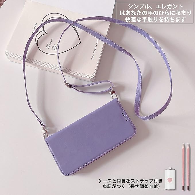 Xperia Ace ケース 手帳型 高質PUレザー SO-02L ケース Sony Xperia Ace カバー エクスペリアAce 携帯カバー 気質 斜めショルダーストラップ付き(長さ調整可能)マグネット内蔵 自吸式開閉 カード収納 スタンド機能 肩掛け 便利 財布型 軽量 耐摩擦 耐衝撃 全面保護 携帯ケース(ライトパープル)