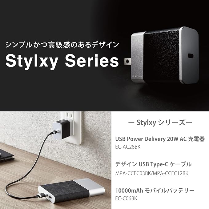エレコム 充電器 Type-C USB PD対応 20W Stylxyシリーズ 1ポート USB-C 折りたたみ式プラグ 【Google Pixel OPPO Xperia Galaxy AQUOS iPhone15 iPad Apple Watch 等対応】 ブラック EC-AC28BK 1)単体