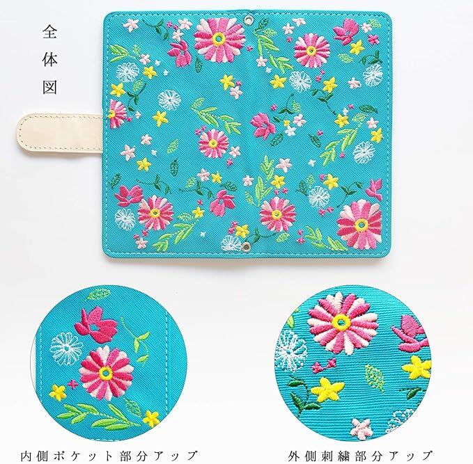 Xperia 5 IV SO-54C SOG09 A204SO 手帳型 ケース カバー SO-54Cケース SO-54Cカバー SO54C SO54Cケース SO54Cカバー SOG09ケース SOG09カバー A204SOケース A204SOカバー 手帳ケース 手帳型ケース スマホケース ちょいヌメ花刺繍 ターコイズ