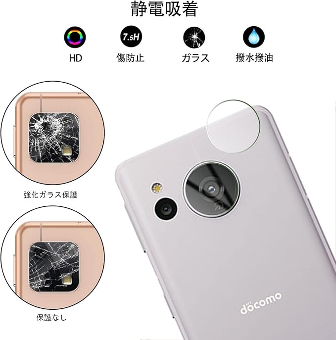 【2+2枚入り】対応 AQUOS Sense7 SHG10 SH-53C ガラスフィルム 2枚 + 対応 AQUOS Sense7 カメラ 強化ガラス 2枚 FOR AQUOS sense7/Sense8 用のガラスフィルム 液晶保護フィルム 全面保護 耐衝撃 極薄 気泡ゼロ 指紋防止 【2枚レンズ保護フィルム+2枚ガラスフィルム】 PCduoduo