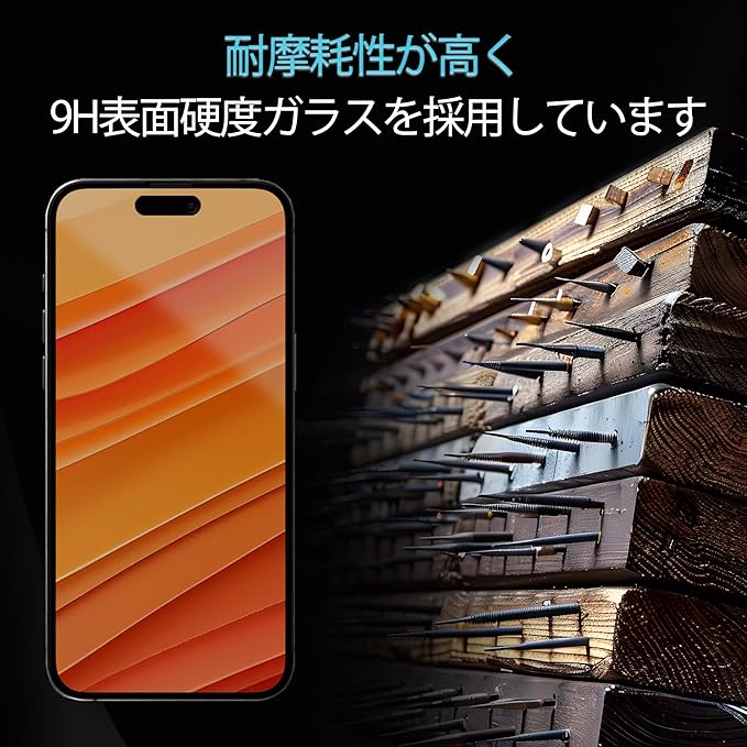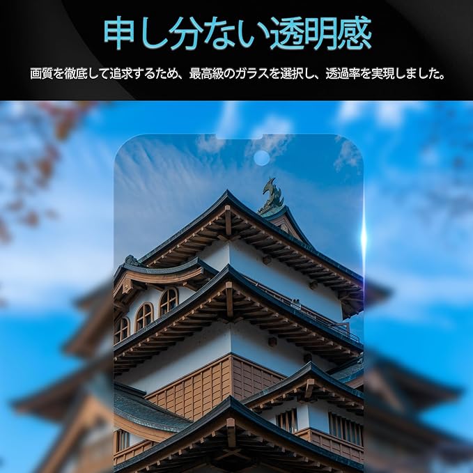 【9H硬度・日本製ガラス素材】日本旭硝子製ガラス素材採用 最上級強度のガラスを使用し表面硬度は9H。万が一スマホを落としてガラスが割れても、 ガラス破片が飛び散らないような安心設計。 飛散防止 、ガラス破片から守ります。