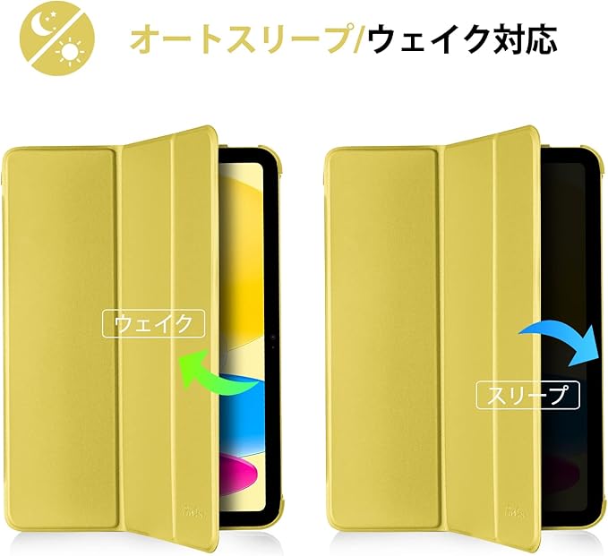 ProCase iPad 11世代/10世代 ケース iPad(A16)11インチ 2025/10.9インチ 2022通用 軽量 耐衝撃 三つ折り スタンド スマートカバー(イエロー)