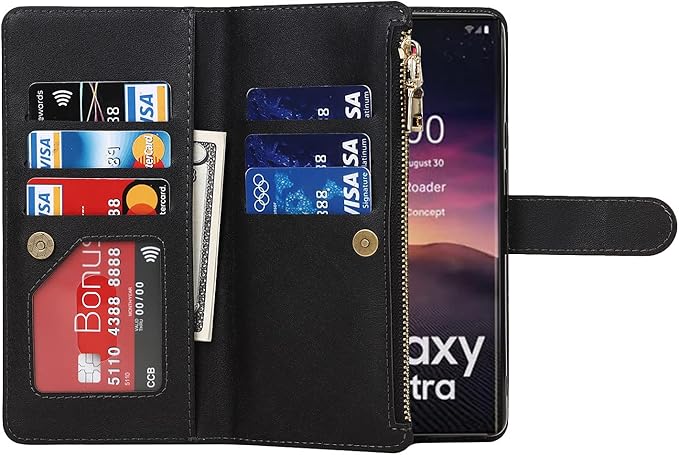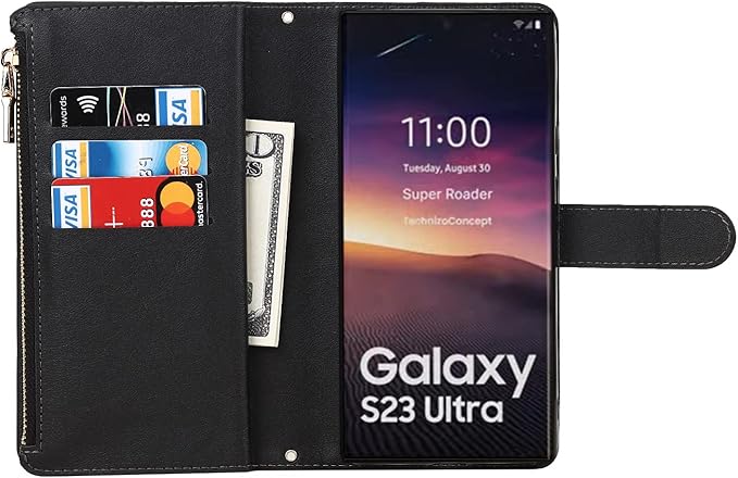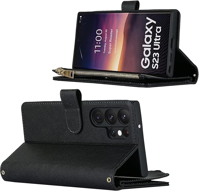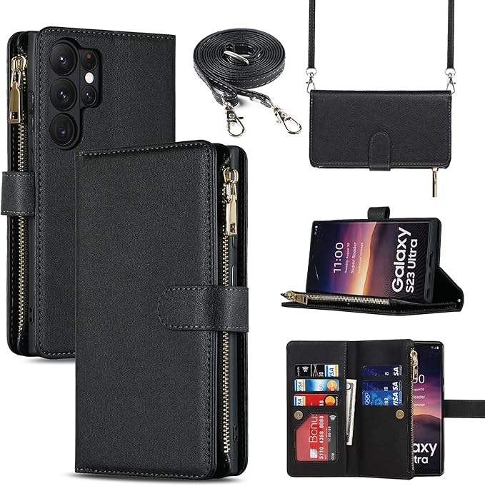 Pelanty for Galaxy S23 Ultra 縄掛けケース手帳型 SC-52D SCG20 携帯カバー 肩掛け斜めがけ ショルダー 合成皮革+TPU マグネット Samsung S23 Ultra 5G 財布型カバー ICカード お札入れ小銭入れ大容量 収納ポケット スタンド機能 ギャラクシーS23Ultra ストラップ付き 落下防止 耐衝撃 全面保護(肩縄付き-ブラック)