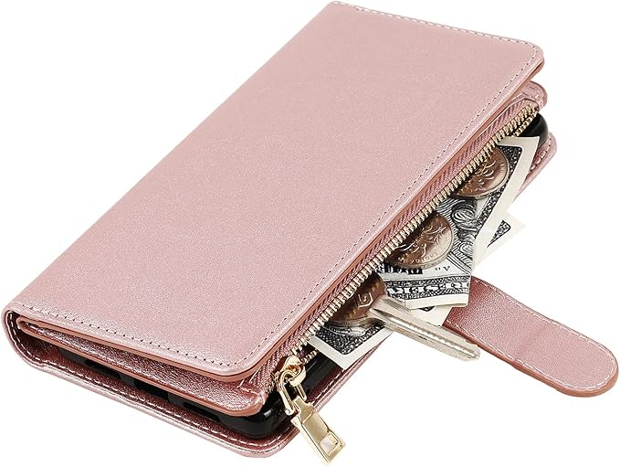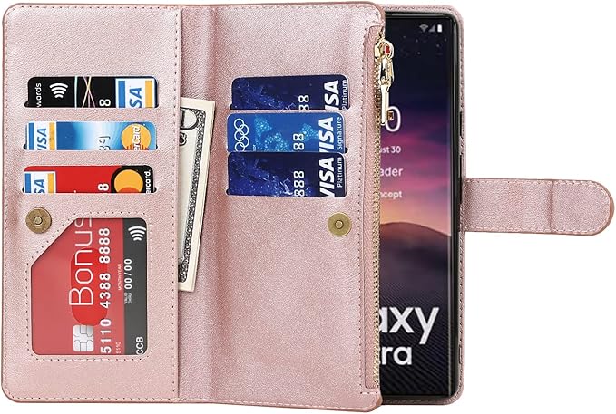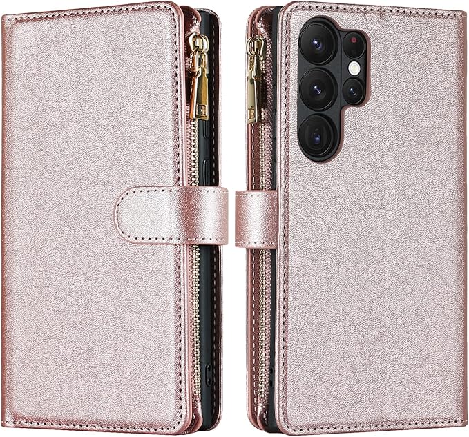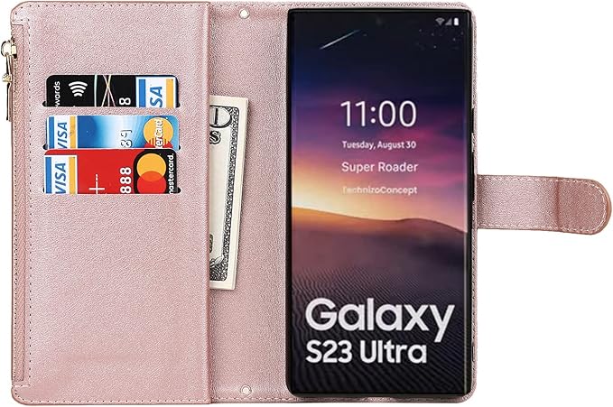 Pelanty for Galaxy S23 Ultra 縄掛けケース手帳型 SC-52D SCG20 携帯カバー 肩掛け斜めがけ ショルダー 合成皮革+TPU マグネット 財布型カバー ICカード お札入れ小銭入れ大容量 収納ポケット スタンド機能 ギャラクシーS23Ultra ストラップ付き 落下防止 耐衝撃 全面保護(肩縄付き-ローズゴールド)