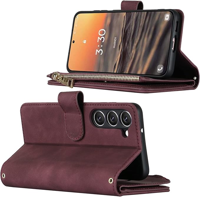 Pelanty for Galaxy S23 縄掛けケース手帳型 SC-51D SCG19 携帯カバー 肩掛け斜めがけ ショルダー 合成皮革+TPU マグネット Samsung S23 5G 財布型カバー ICカード お札入れ小銭入れ大容量 収納ポケット スタンド機能 サムスン ギャラクシー S23 ストラップ付き 落下防止 耐衝撃 全面保護(肩縄付き-ワインレッド)