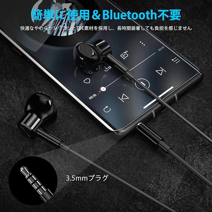 MACLE イヤホン 有線 マイク付き 3.5mmイヤフォン パソコン PC用 HiFi音質 通話可能 インイヤー型 対応iPhone iPad/Galaxy/Sony Xperia/AQUOS sense9 8 wish 3/OPPO/arrows/moto Androidスマホ/Switch対応 磁気 ノイズキャンセリング イヤフォン テレワーク会議 ヘッドホン ブラック