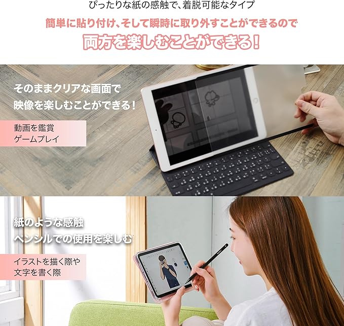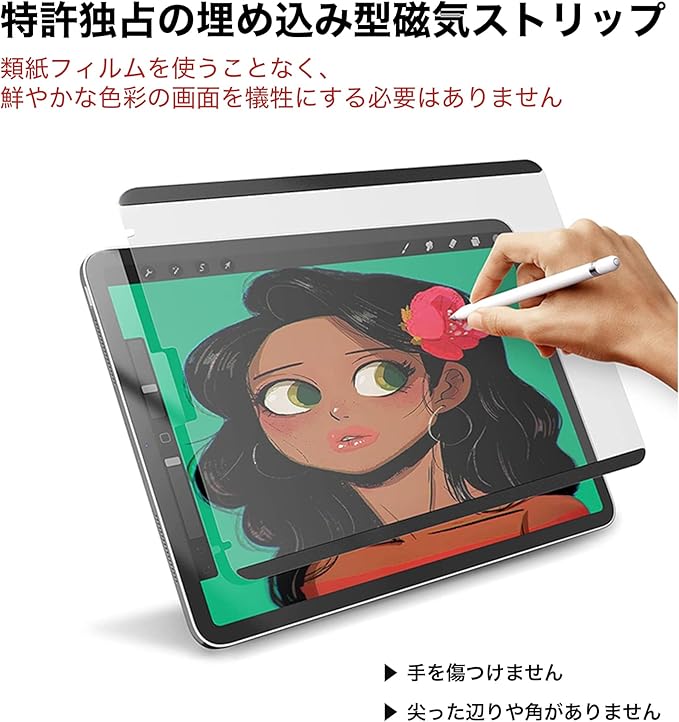 【ペン先の磨耗を50%低減】 最新素材を採用しや表面特殊加工によりペン先の磨耗を50%低減させるため、タッチペンを長く使用できます。鉛筆硬度3Hのハードコート加工により、フィルム表面の傷にも防止します