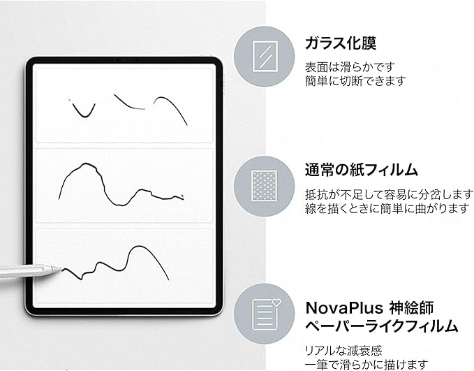【ケント紙のような書き心地を忠実に再現】 :ケント紙の摩擦係数に近づけるとともに、ケント紙に近い書き心地を追及しました。 線画が描き易く、従来品より圧倒的に書きやすいです