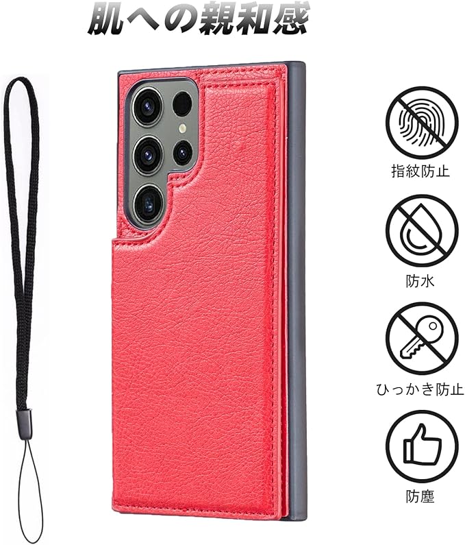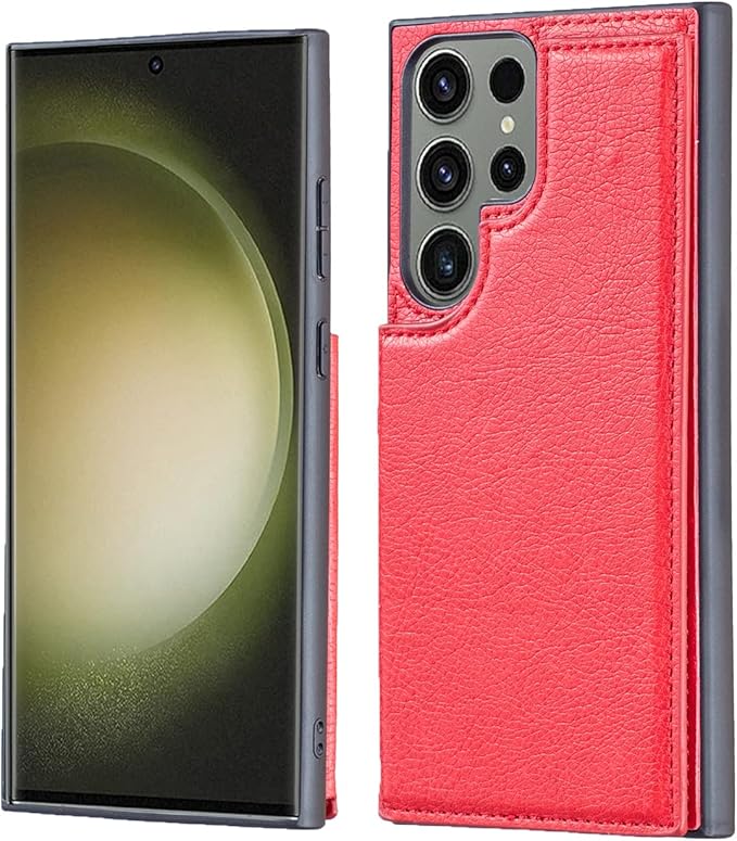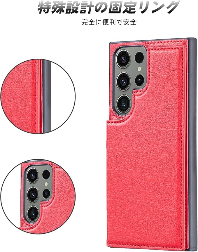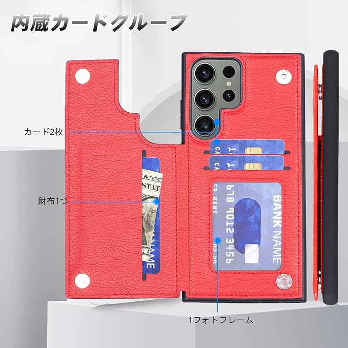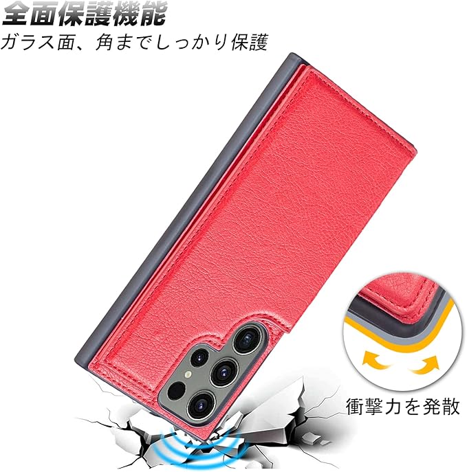 【 Antimam 】Galaxy S23 Ultra 5G/SC-52D/SCG20 用 ケース 手帳型 財布型 新型 全面保護 耐衝撃 擦り傷防止 軽量 落下保護 手帳型 ケース(レッド)サムスン ギャラクシー S23ウルトラ5G 高級 PU革 背面 IC