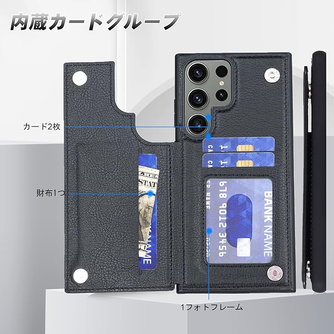 【収納機能】ケース背面はお札ポケットと 2 カードスロットを搭載して、カードや名刺やお札などを入れることができます。日常生活に便利です。