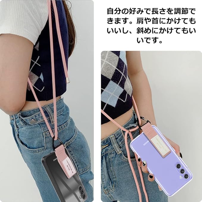 Samsung Galaxy A54 ケース SC-53D SCG21 クリア ケース ストラップ 肩掛け ギャラクシー A54 スマホケース ストラップ付 縄掛け 斜めかけ 透明 TPU スマホシリコン 耐衝撃 ピンク