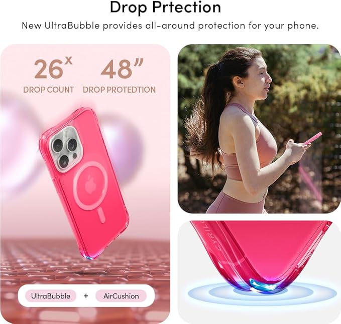 【CYRILL】 by Spigen iPhone15ProMax 用 ケース MagSafe対応 ウルトラシアー 半透明 ストラップホール付き 高弾性 耐久性 耐衝撃 カメラ保護 Qi充電 ほこりなし アイフォン 15 プロマックス 用 カバー ウルトラシアーコレクション(ホットピンク)