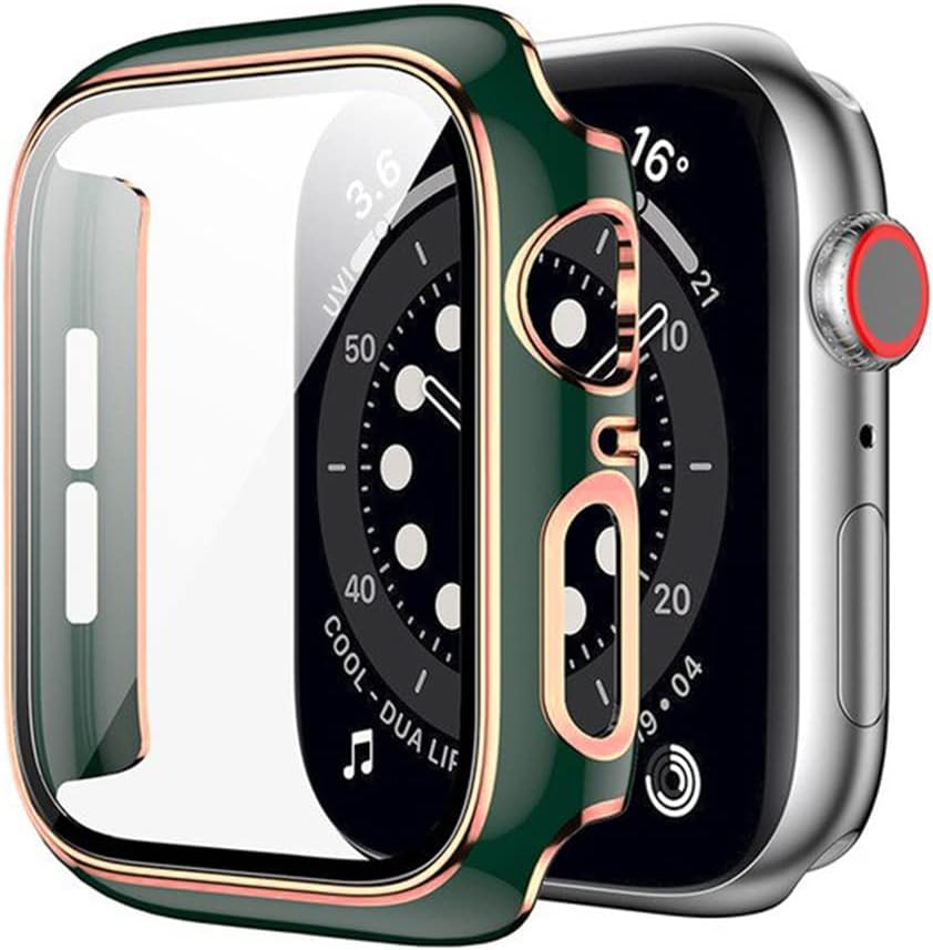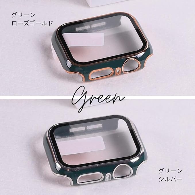 AriRi アップルウォッチ カバー ケース ライン入りデザイン 40mm 41mm 44mm 45mm (40mm, グリーン/ローズゴールドライン)