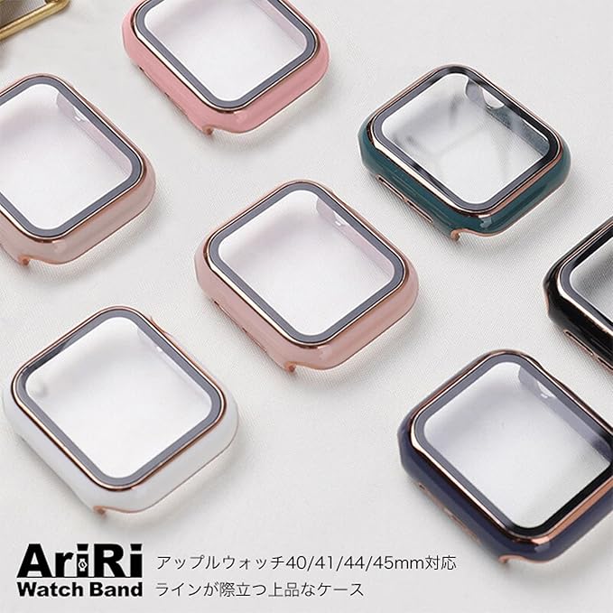 AriRi アップルウォッチ カバー ケース ライン入りデザイン 40mm 41mm 44mm 45mm (44mm, ネイビー/ローズゴールドライン)
