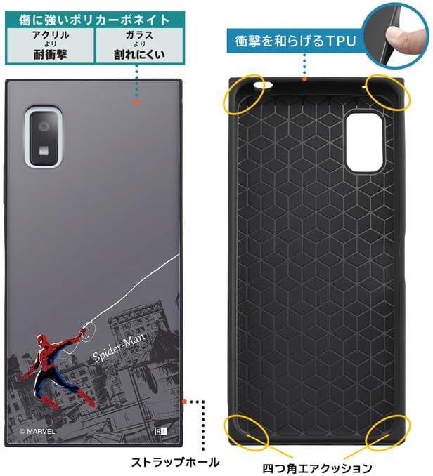 (C) MARVEL 個性的な四角いフォルムと、衝撃に強いTPU素材の側面、薄くて軽く透明度の高いPCパネル を背面にセットした AQUOS wish3用 耐衝撃ケース KAKUハイブリッド。 端末側面保護、衝撃吸収エアクッション付。 背面パネルには『アイアンマン』のデザインがプリントされ、スマートフォンを鮮やかに彩ります。 キャラクター名: アイアンマン ( IRON MAN ) ストラップ