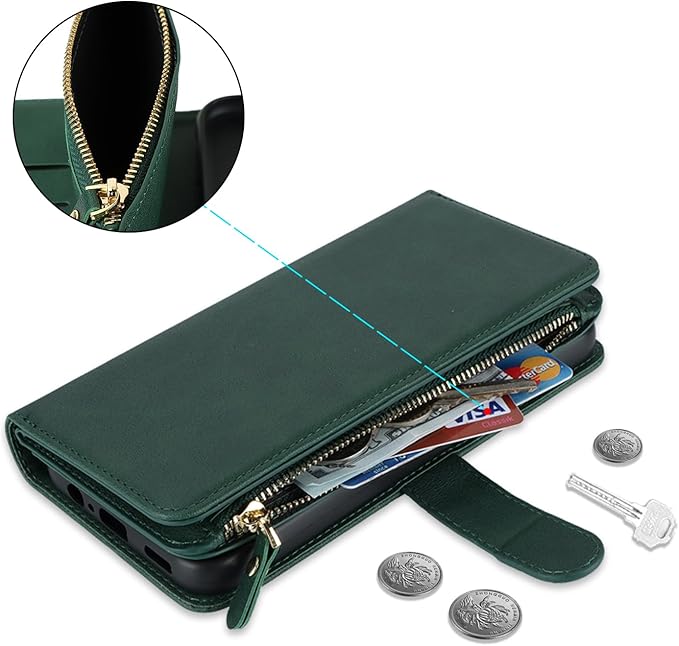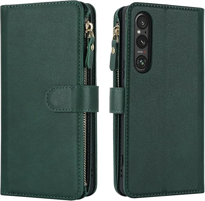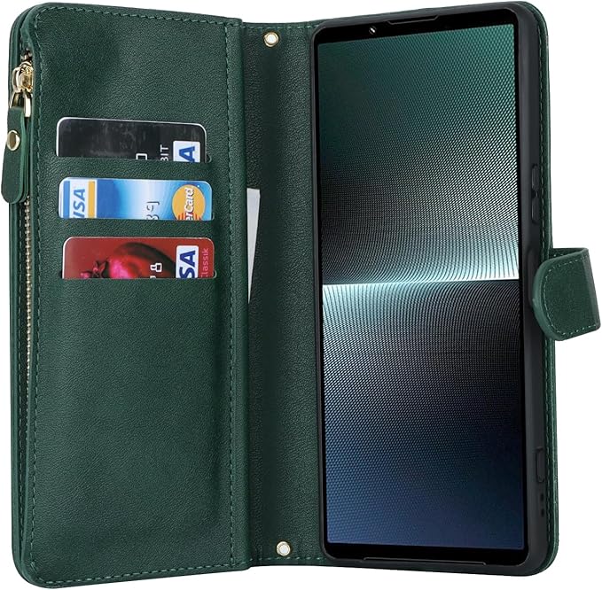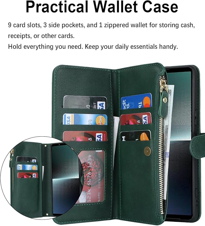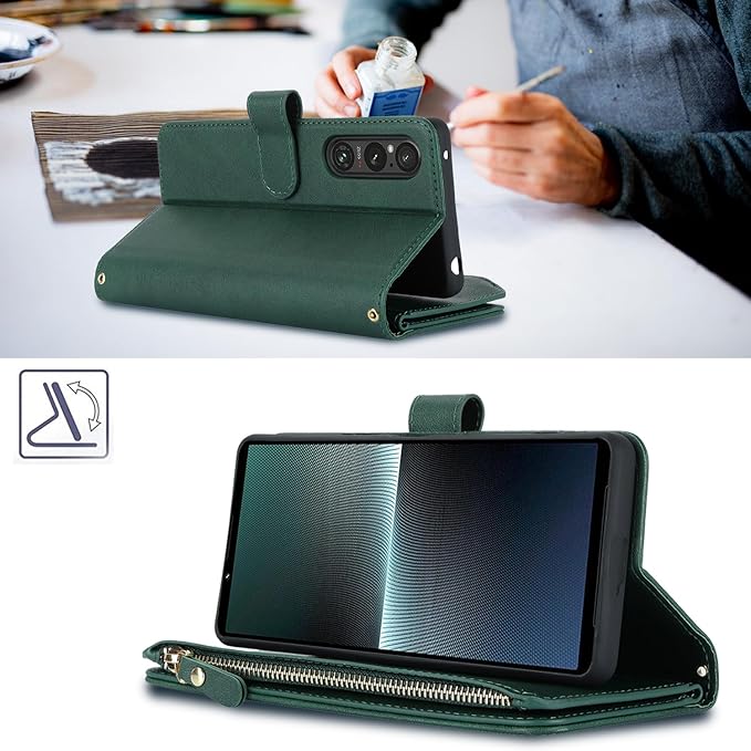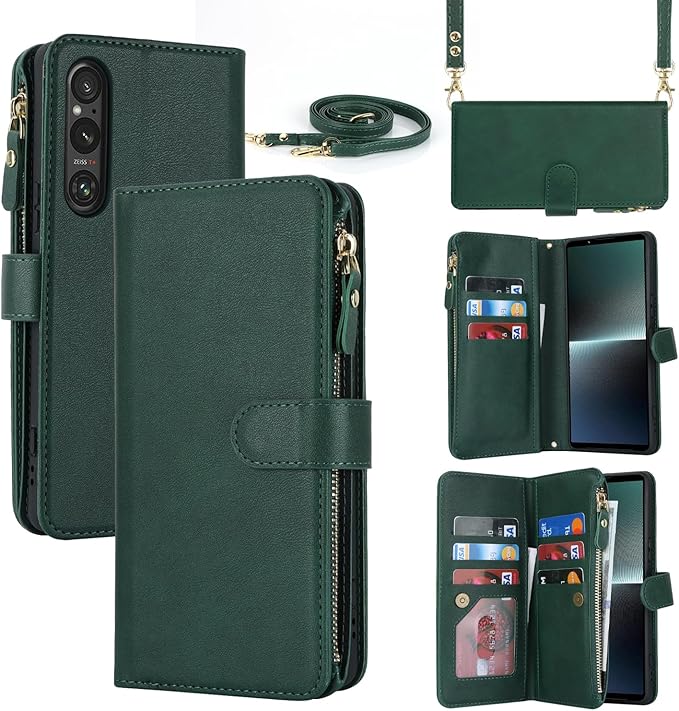 Pelanty for Xperia 1 V 縄掛けケース手帳型 XQ-DQ44 SO-51D SOG10 携帯カバー 肩掛け斜めがけ ショルダー 合成皮革+TPU マグネット Sony Xperia 1 V 財布型カバー ICカード お札入れ小銭入れ大容量 収納ポケット スタンド機能 ソニー エクスペリア1V 1 5代 ストラップ付き 落下防止 耐衝撃 全面保護(肩縄付き-グリーン)
