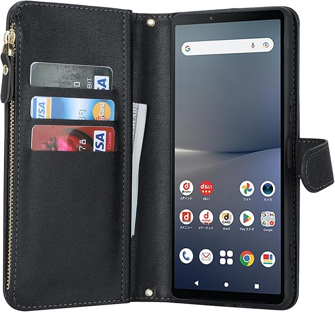 Pelanty for Xperia 10 V 縄掛けケース手帳型 SO-52D SOG11 携帯カバー 肩掛け斜めがけ ショルダー 合成皮革+TPU マグネット Sony Xperia 10 V 財布型カバー ICカード お札入れ小銭入れ大容量 収納ポケット